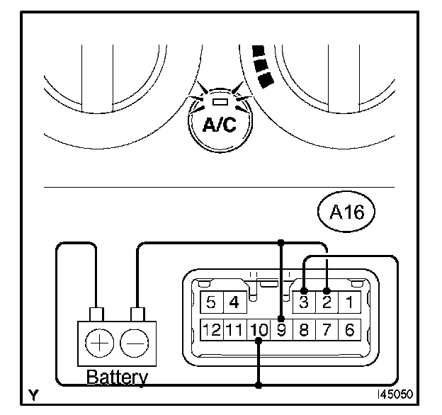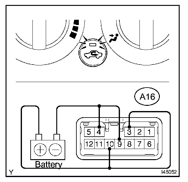 3. Under the above condition, connect the positive (+) lead from the battery to terminal 3 (ILL+) and then check that the indicator dims.