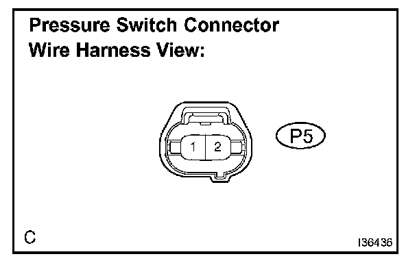 2. Connect terminals 1 and 2 of the pressure switch connector on the vehicle wire harness side using a service wire.