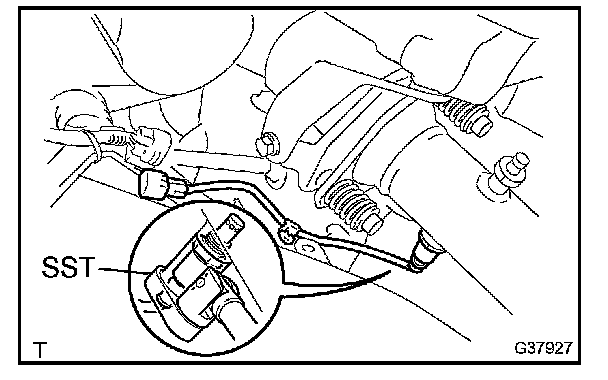 c. Using SST, remove the air fuel ratio sensor.