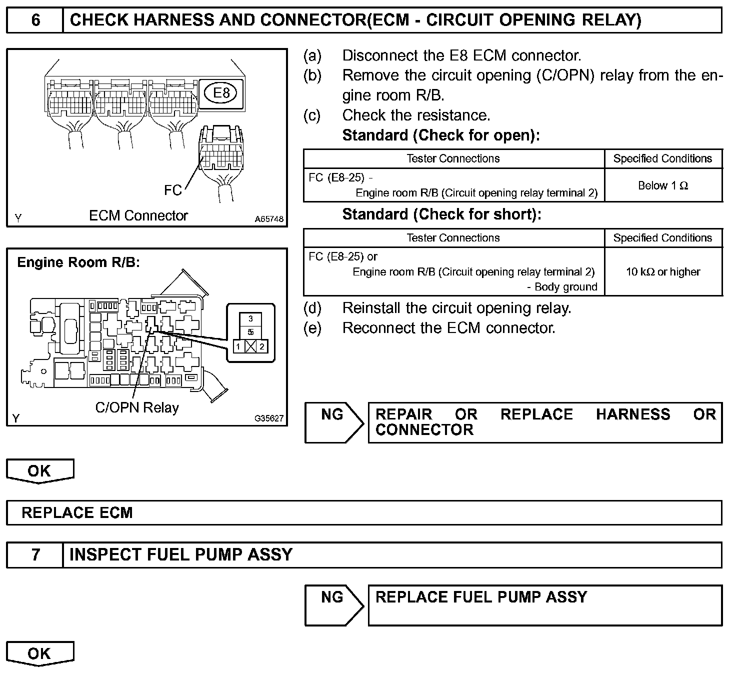 While the NE signal is being generated (engine running), the ECM keeps Tr ON, therefore keeping the circuit opening relay ON, so that the fuel pump continues to operate.