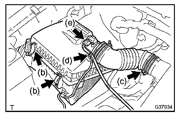 d. Disconnect the 2 air cleaner clamps.
