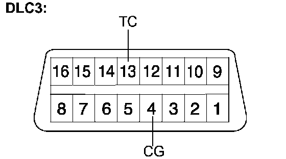 (4) Using SST, connect terminals 13 (TC) and 4 (CG) of the DLC3.