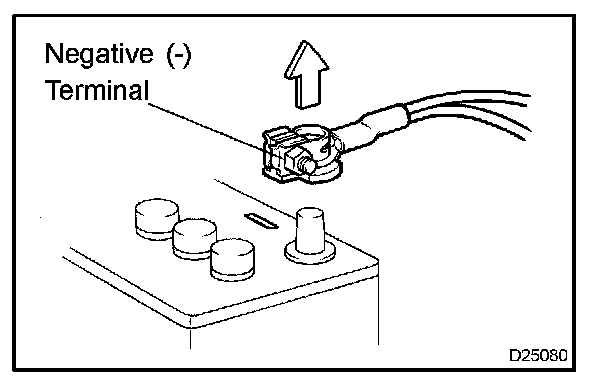 1. Before performing electronic work, disconnect the battery negative (-) terminal cable to prevent component and wire damage caused by accidental short circuits.