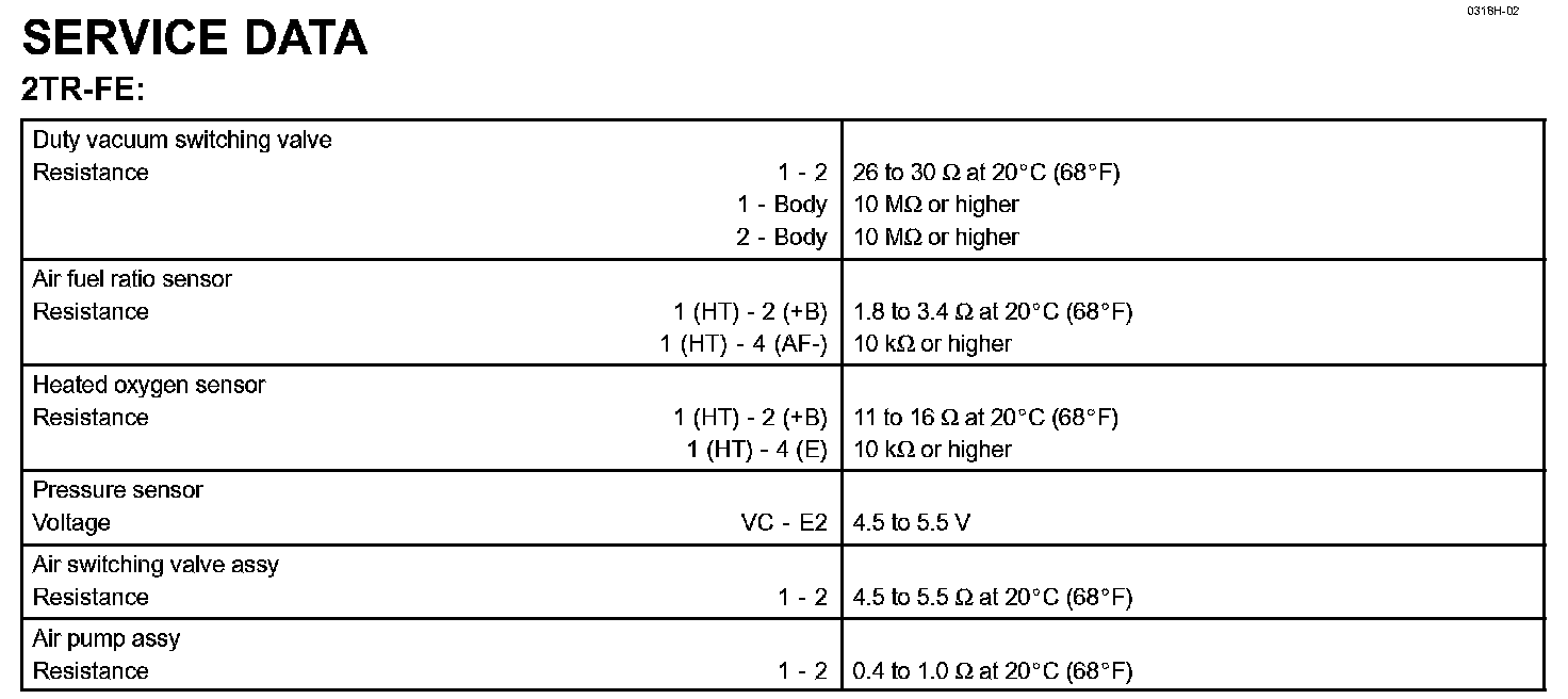 Emission Control - Service Data: