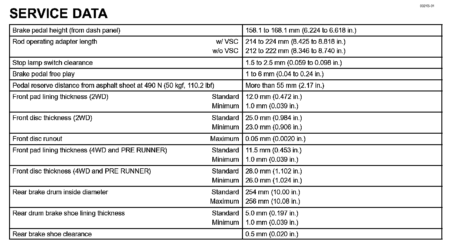 Brake - Service Data: