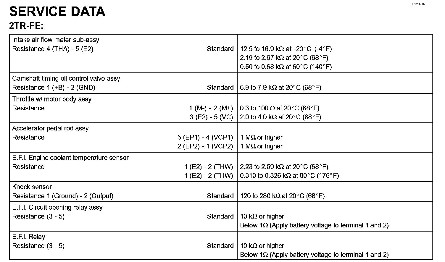 Engine Control System - Service Data: