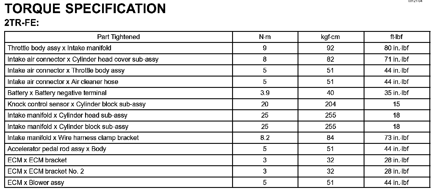 Engine Control System - Torque Specification: