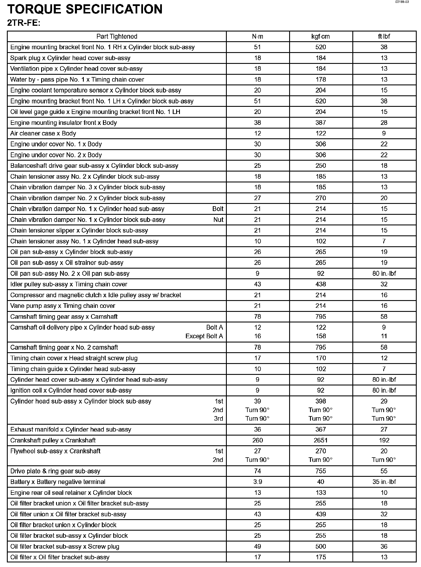Engine Mechanical - Torque Specification Part 2: