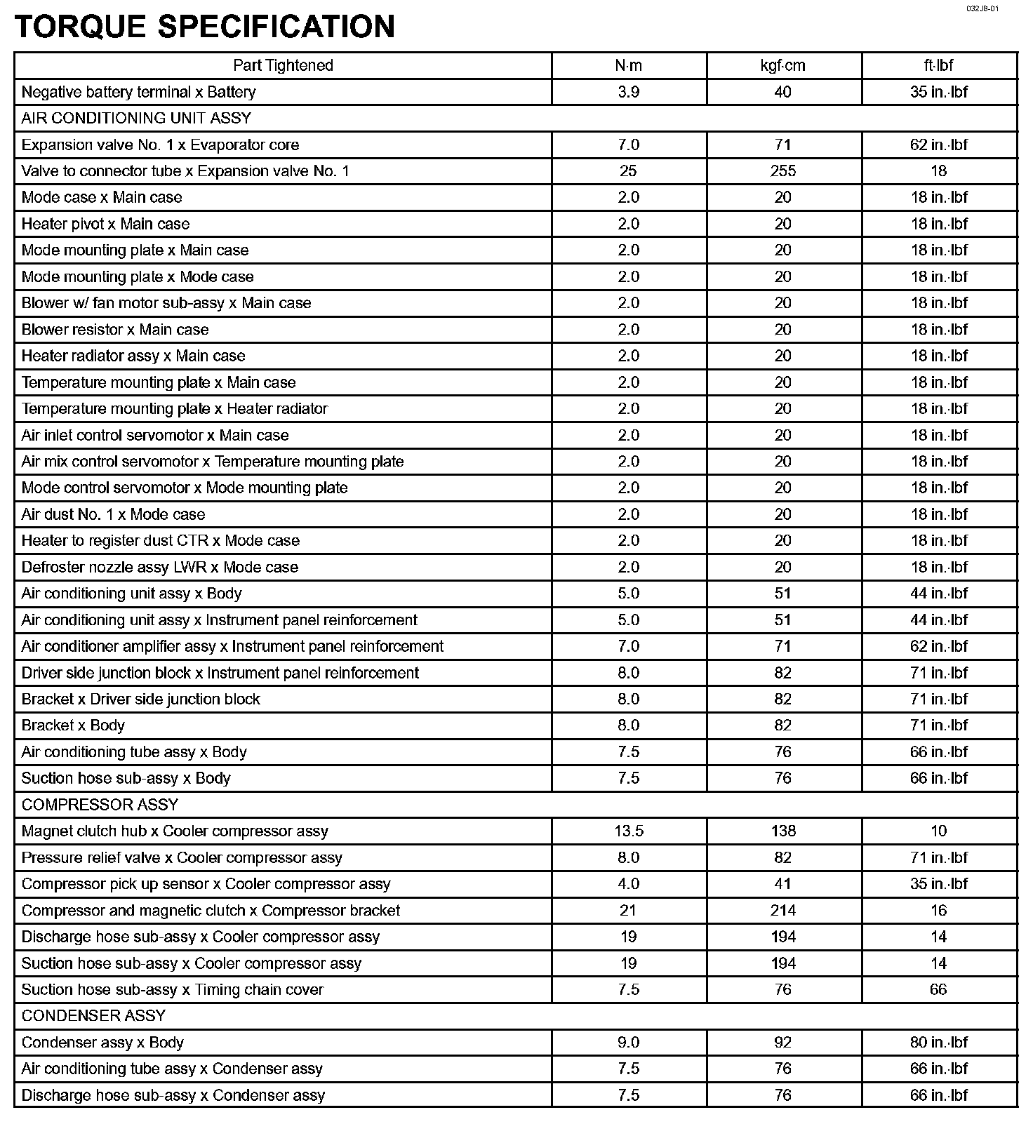 Heater And Air Conditioning - Torque Specification: