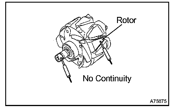 1. Using an ohmmeter, check that there is no continuity between the slip ring and generator rotor assembly.