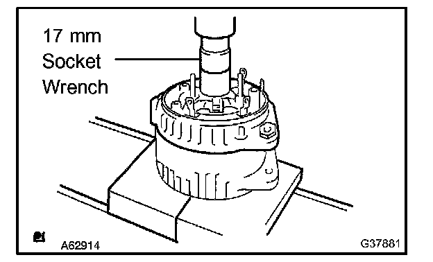 c. Using a 17 mm socket wrench and press, slowly press in the rectifier end frame.