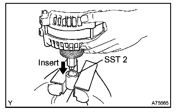 d. Insert SST 1-A and B into SST 2, and attach the generator pulley nut to SST 2