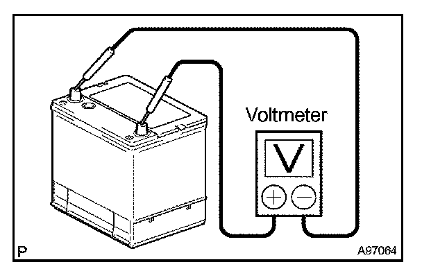4. Using a voltmeter, measure the battery voltage between the negative (-) and positive (+) terminals of the battery.