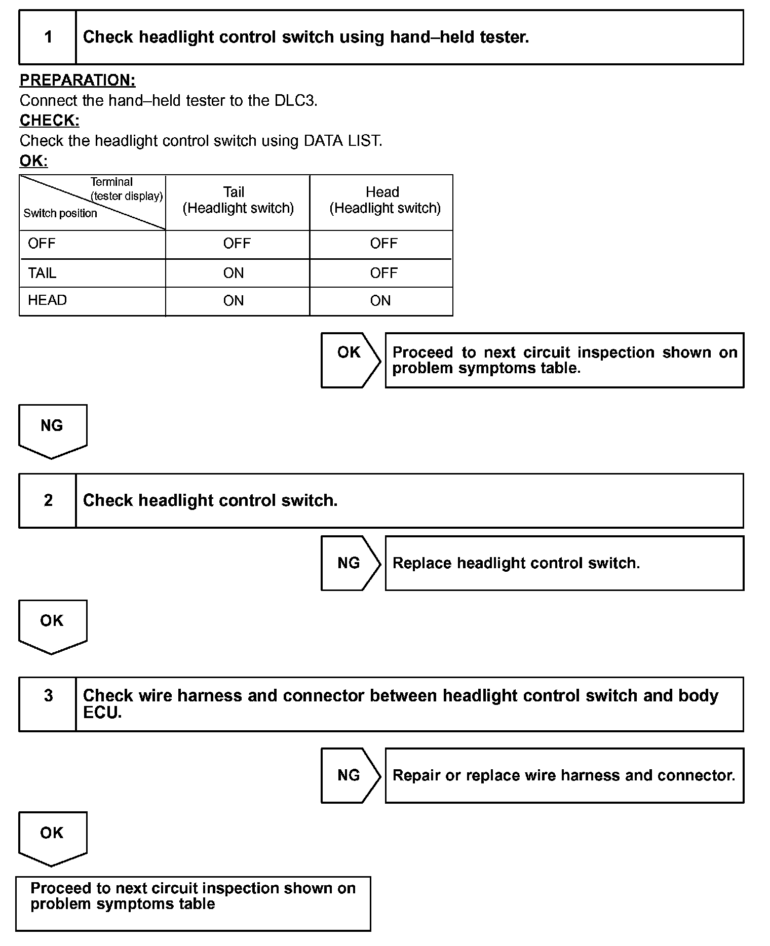 HINT: In case of using the hand-held tester, start the inspection from step 1 and in case of not using the hand-held tester, start from step 2.