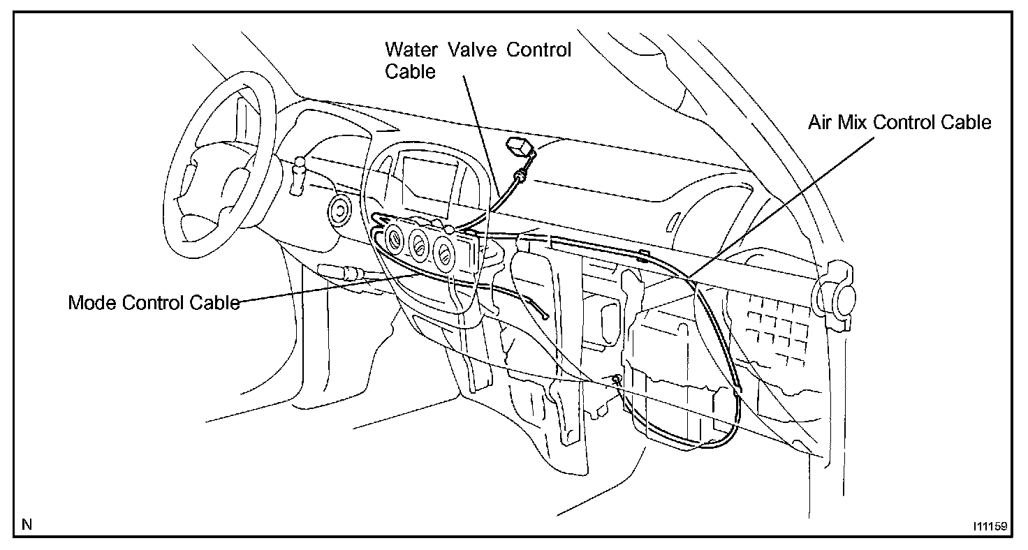 Pull the air inlet control link to the "FACE" position, connect the control cable and lock the clamp.
