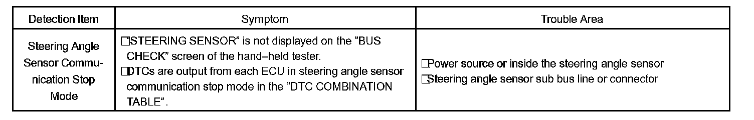 STEERING ANGLE SENSOR COMMUNICATION STOP MODE