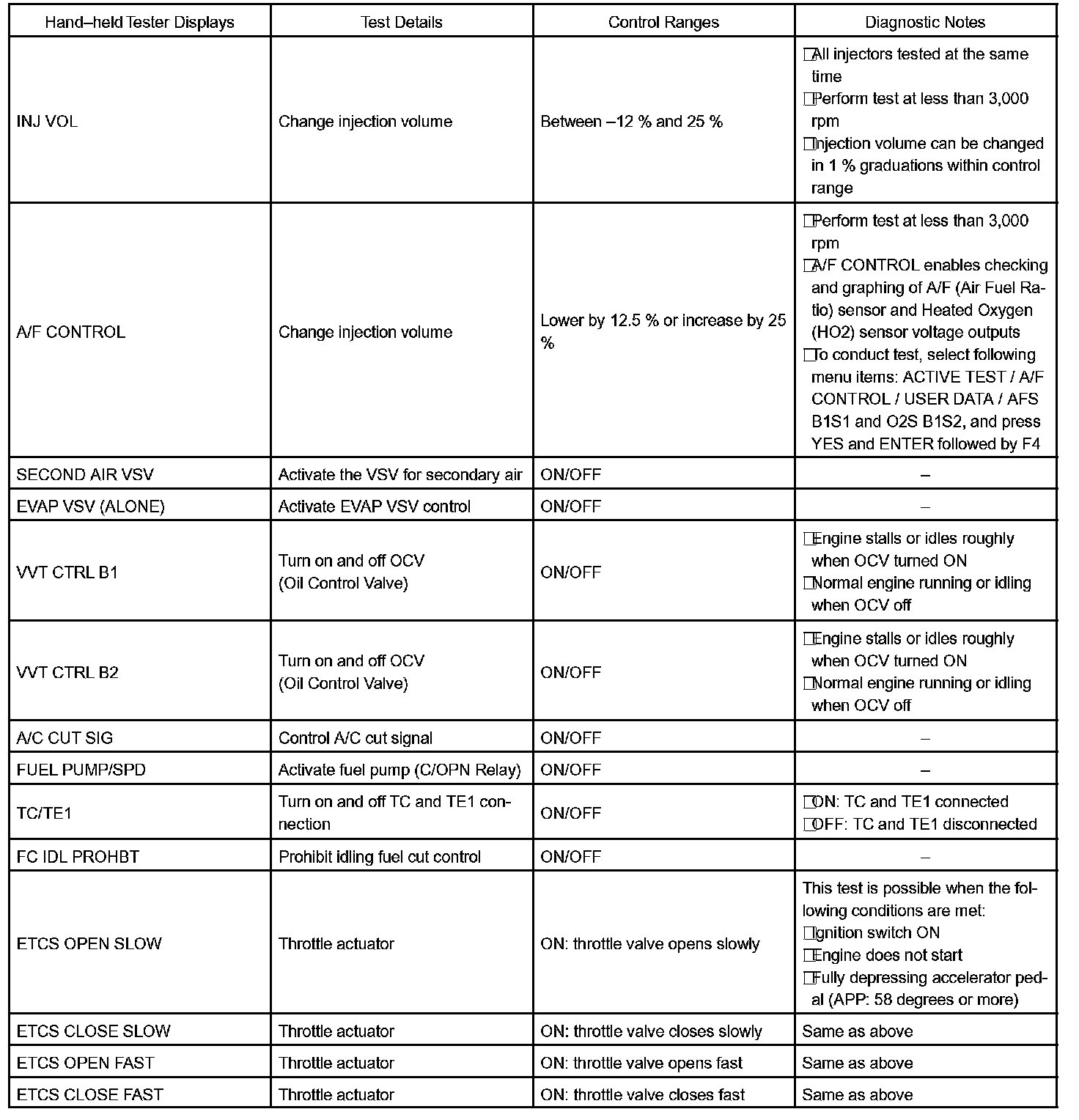 ACTIVE TESTHINT: Performing an ACTIVE TEST enables components including the relays, VSV (Vacuum Switching Valve),and actuators, to be operated without removing any parts. The ACTIVE TEST can be performed with a hand-held tester. Performing an ACTIVE TEST as the first step of troubleshooting is one method of shortening diagnostic time.