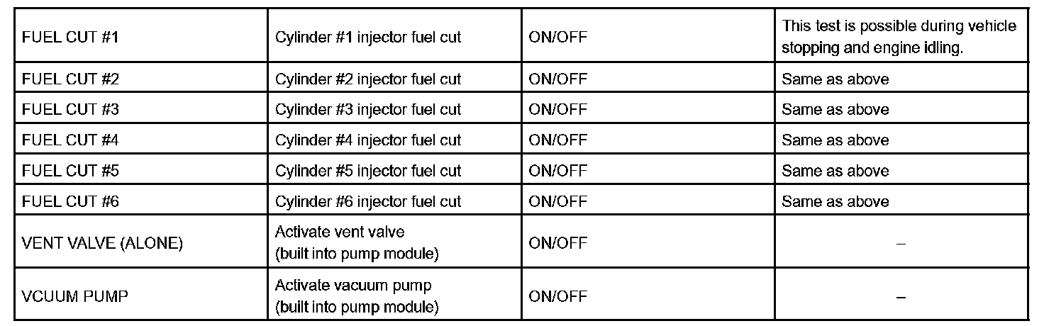 e. Perform the ACTIVE TEST by referring to the table.