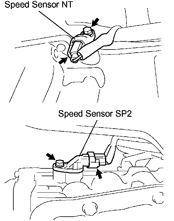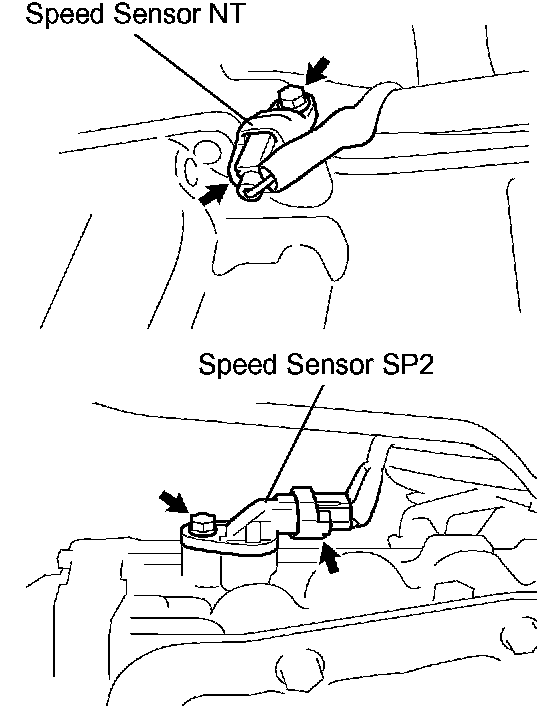 a. Remove the 2 bolts, speed sensors NT and SP2.