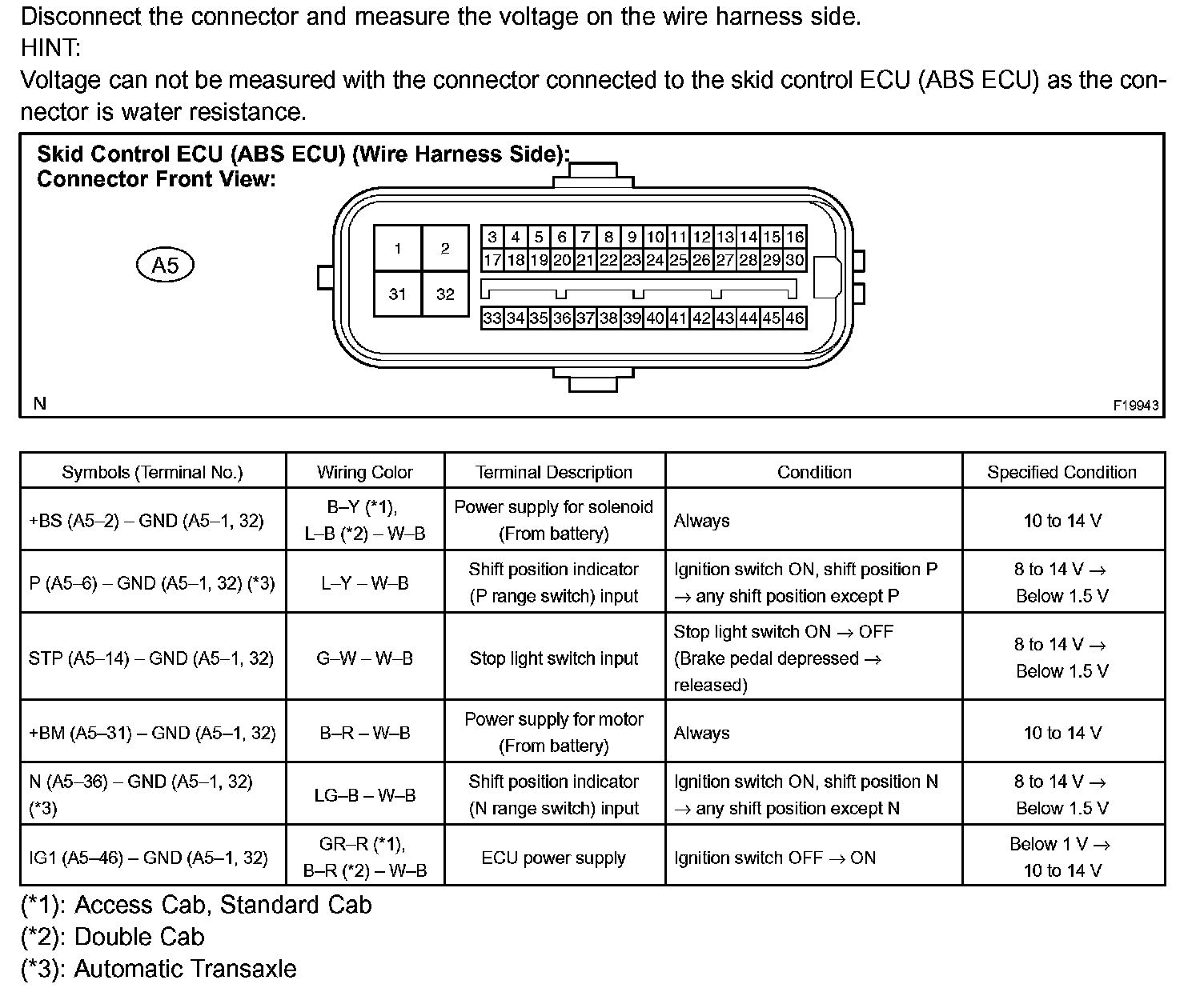 Terminals Of Control Module / Pinouts - Terminal Inspection: