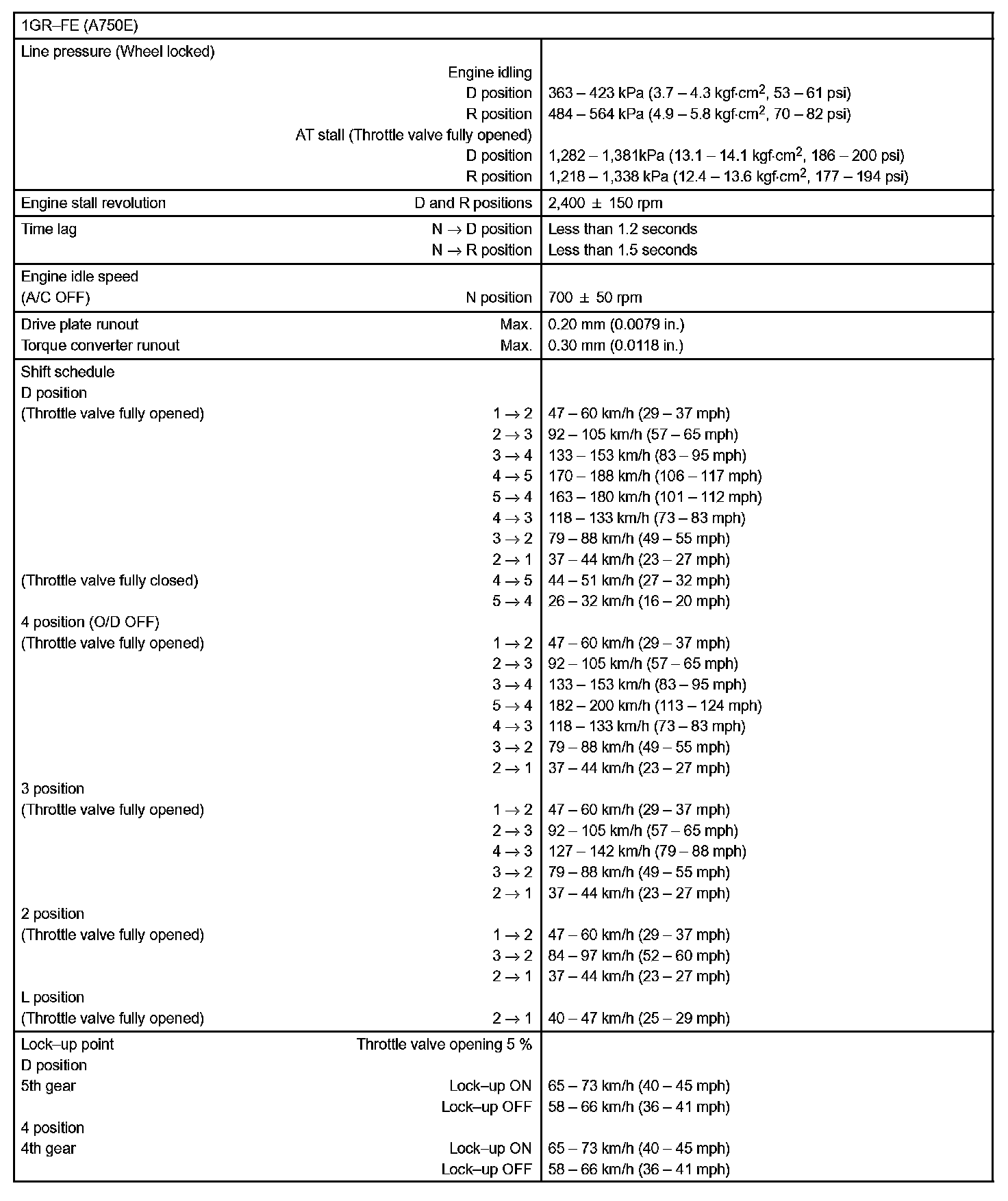 Automatic Transmission - Torque Specification:
