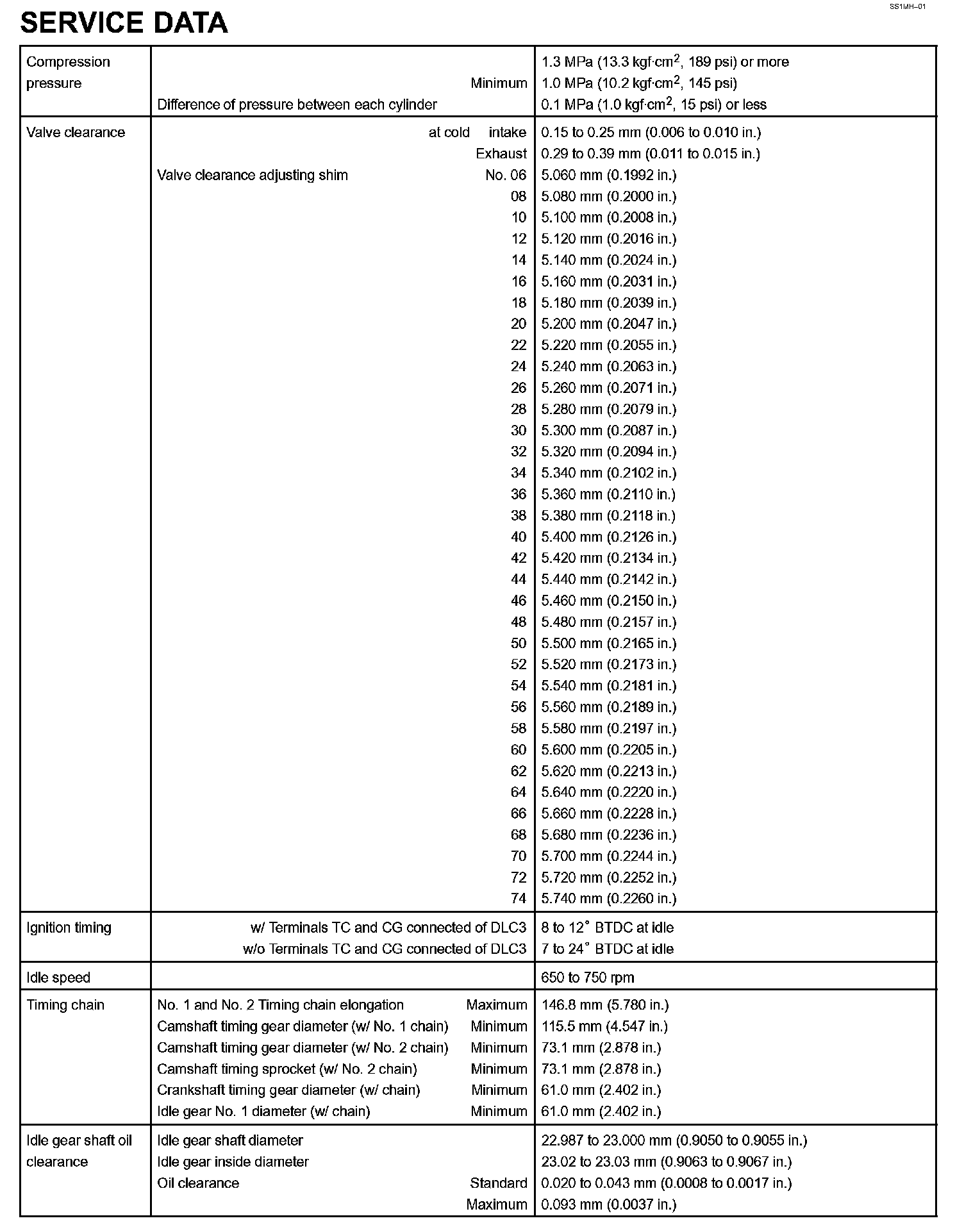 Engine Mechanical - Service Data Part 1: