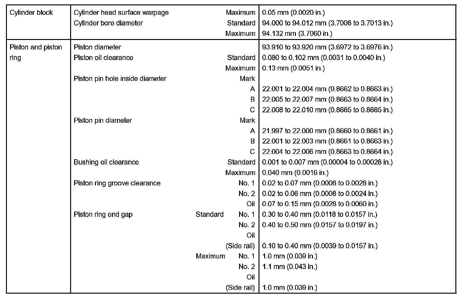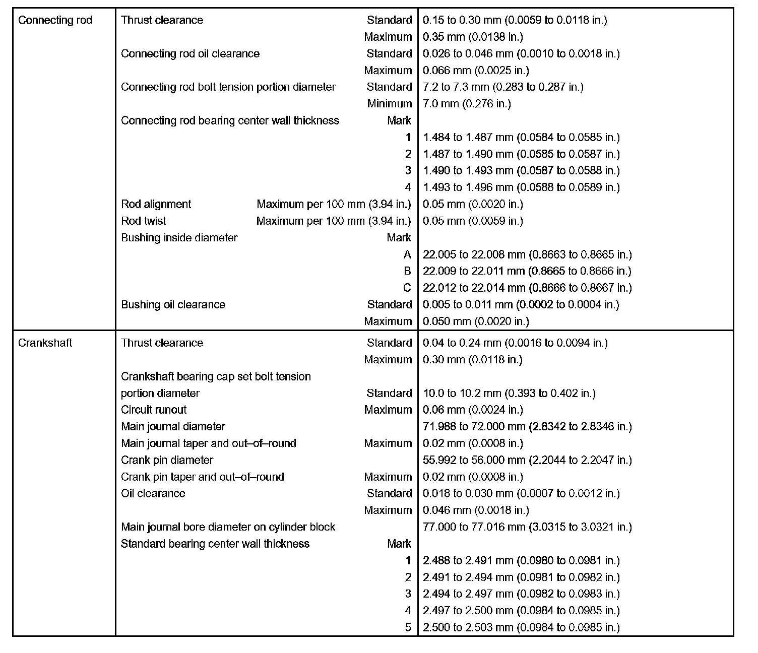 Engine Mechanical - Service Data Part 2: