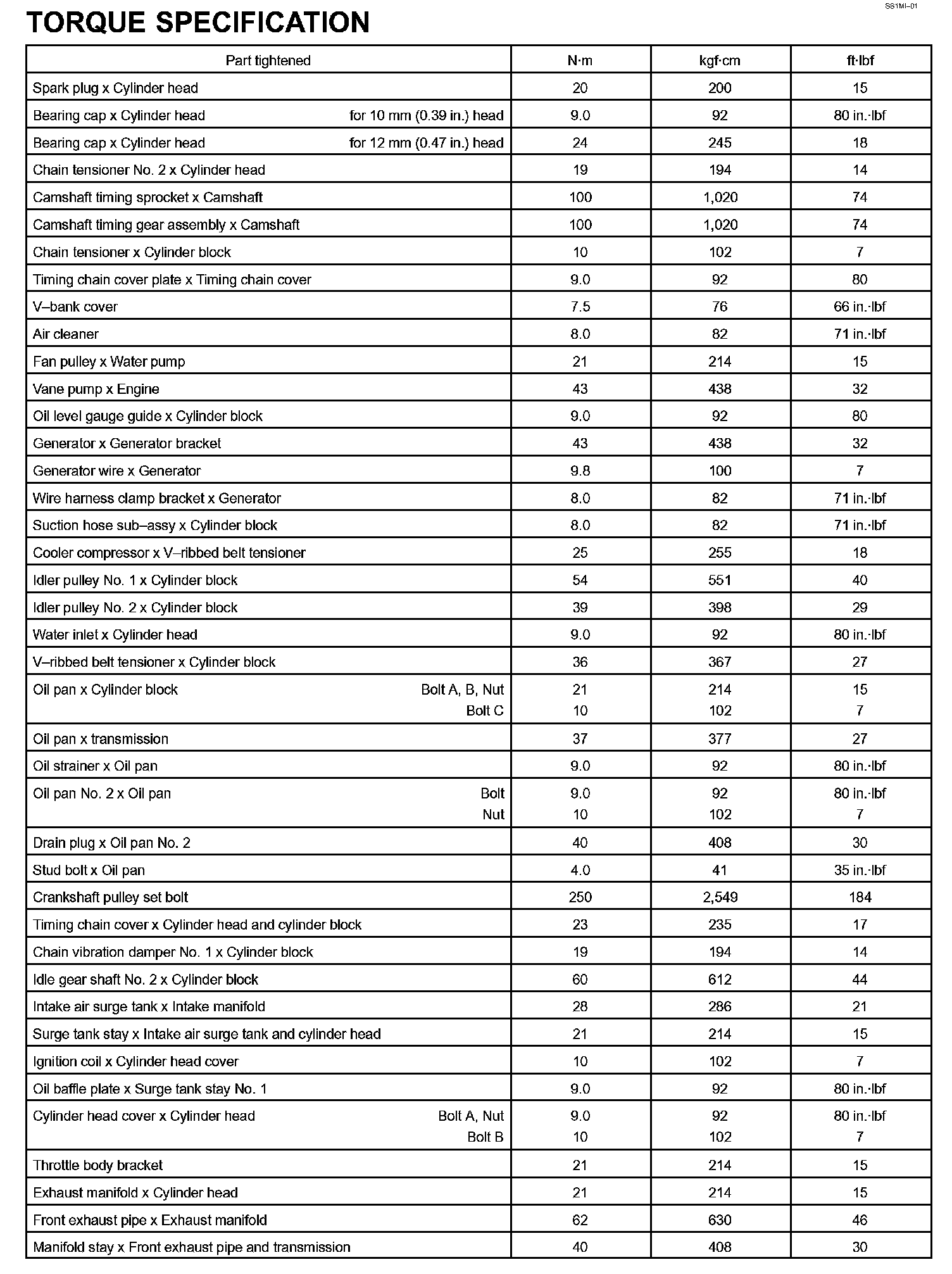 Engine Mechanical - Torque Specification Part 1: