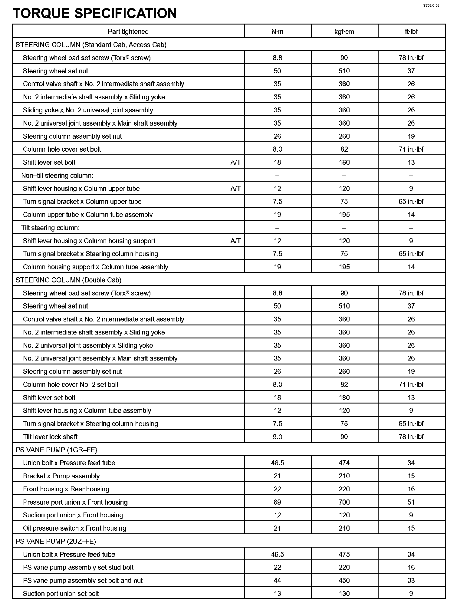 Steering - Torque Specification Part 2:
