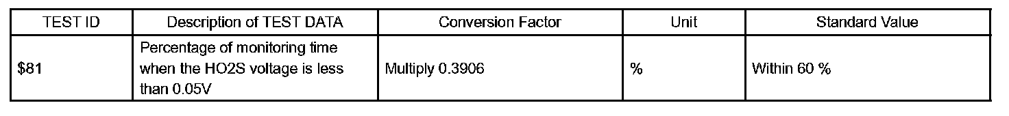 2. Find the Conversion Factor value of "TIME $81" in the O2S TEST RESULT chart. 0.3906 is specified for $81 in this chart.