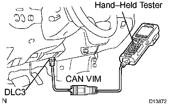(1) Connect a hand-held tester to the Controller Area Network Vehicle Interface Module (CAN VIM). Then connect the CAN VIM to the Date Link Connector 3 (DLC3)