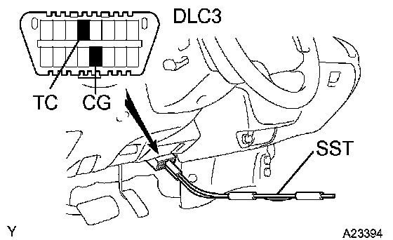 (2) Using SST, connect terminals TC and CG of the DLC3.