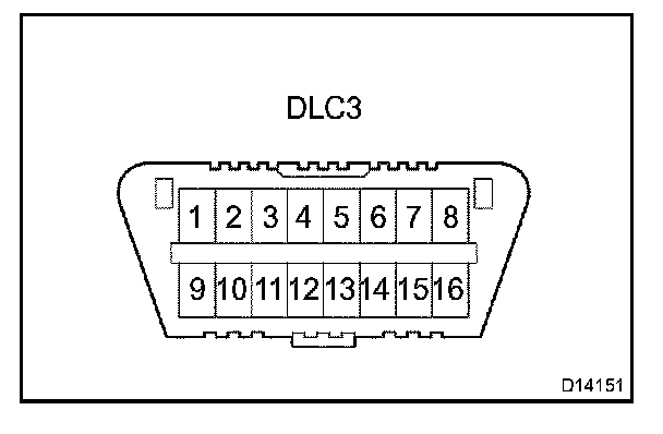 CHECK DLC3 (DATA LINK CONNECTOR 3)The vehicle's ECM uses the ISO 15765-4 for communication protocol. The terminal arrangement of the DLC3 complies with SAE J1962 and matches the ISO 15765-4 format.