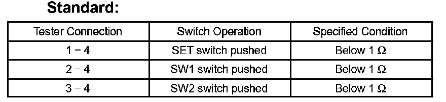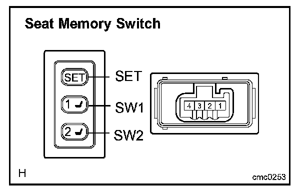 INSPECT SEAT MEMORY SWITCHa. Measure the resistance between the terminals when each switch is operated.