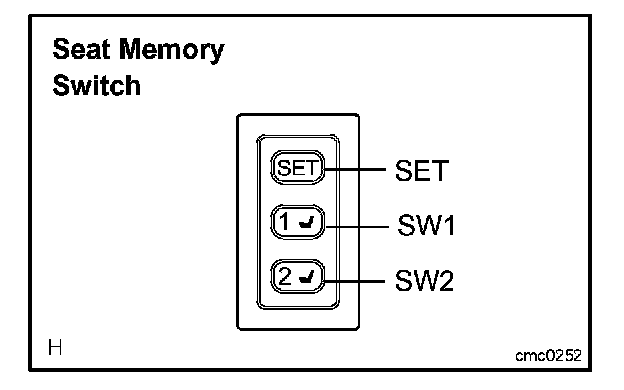 k. After the SW1 and SW2 switches are pressed together while the SET switch is held down check that the seat does not move (the seat position is not recorded) when the SW1 or SW2 switches is pressed.