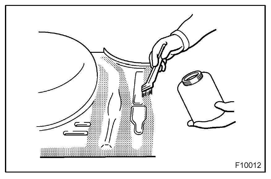 1. To prevent corrosion and protect the body from damage by flying stones, etc., apply anti-chipping paint to the rocker panel, wheel arch areas, balance panel, etc.
