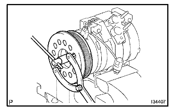 a. Place the compressor and magnetic clutch in a vise.
