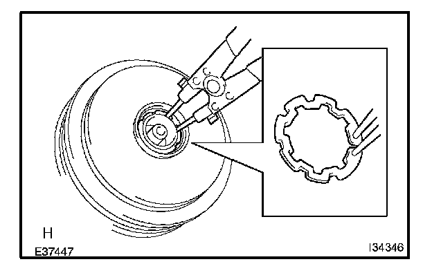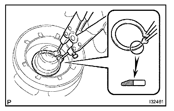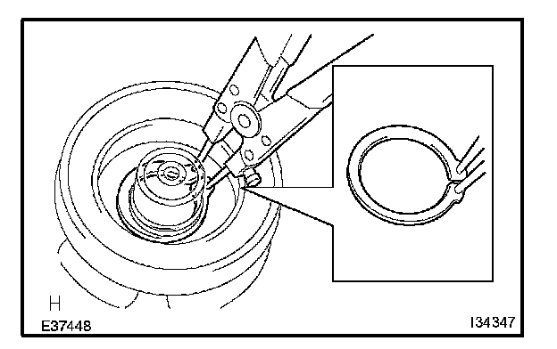b. Using a snap ring expander, install a new snap ring with the chamfered side facing up.