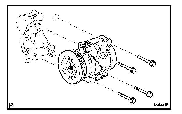 b. Remove the 4 bolts and the compressor and magnetic clutch.