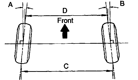 If the wheel angles differ from the standard of the specification, inspect the toe-in.