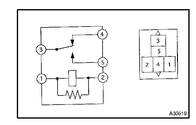 2. Using an ohmmeter, check for continuity between terminals 3 and 5 when voltage is applied across terminals 1 and 2.