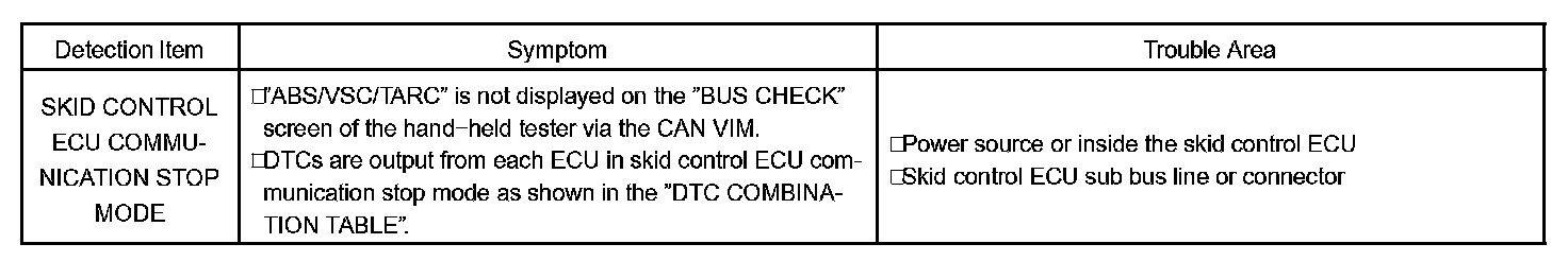SKID CONTROL ECU COMMUNICATION STOP MODE
