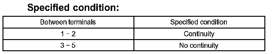 2. Using an ohmmeter, check for continuity between terminals 3 and 5 when the battery voltage is applied across terminals 1 and 2.