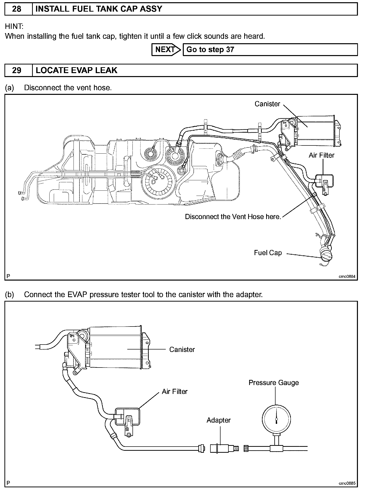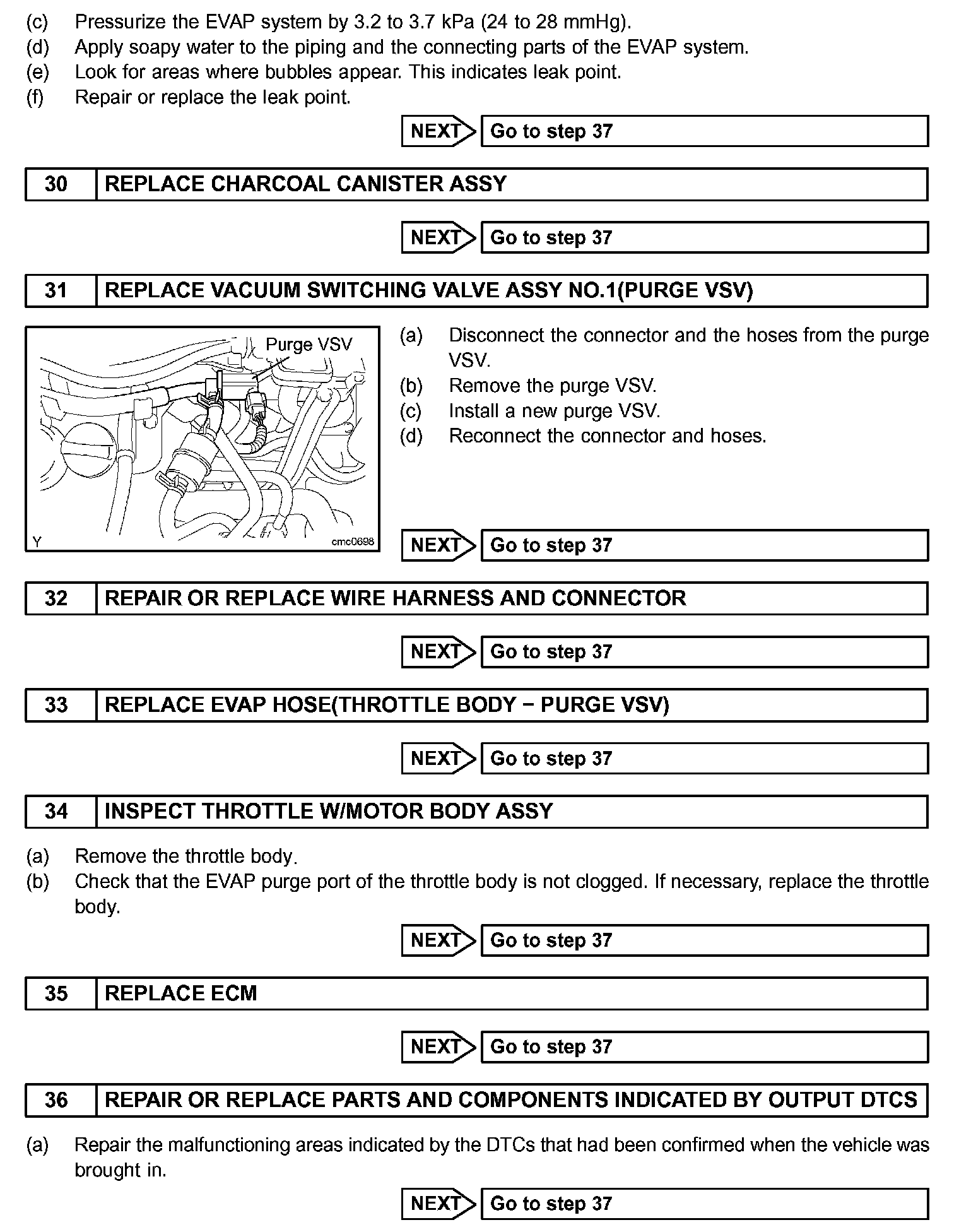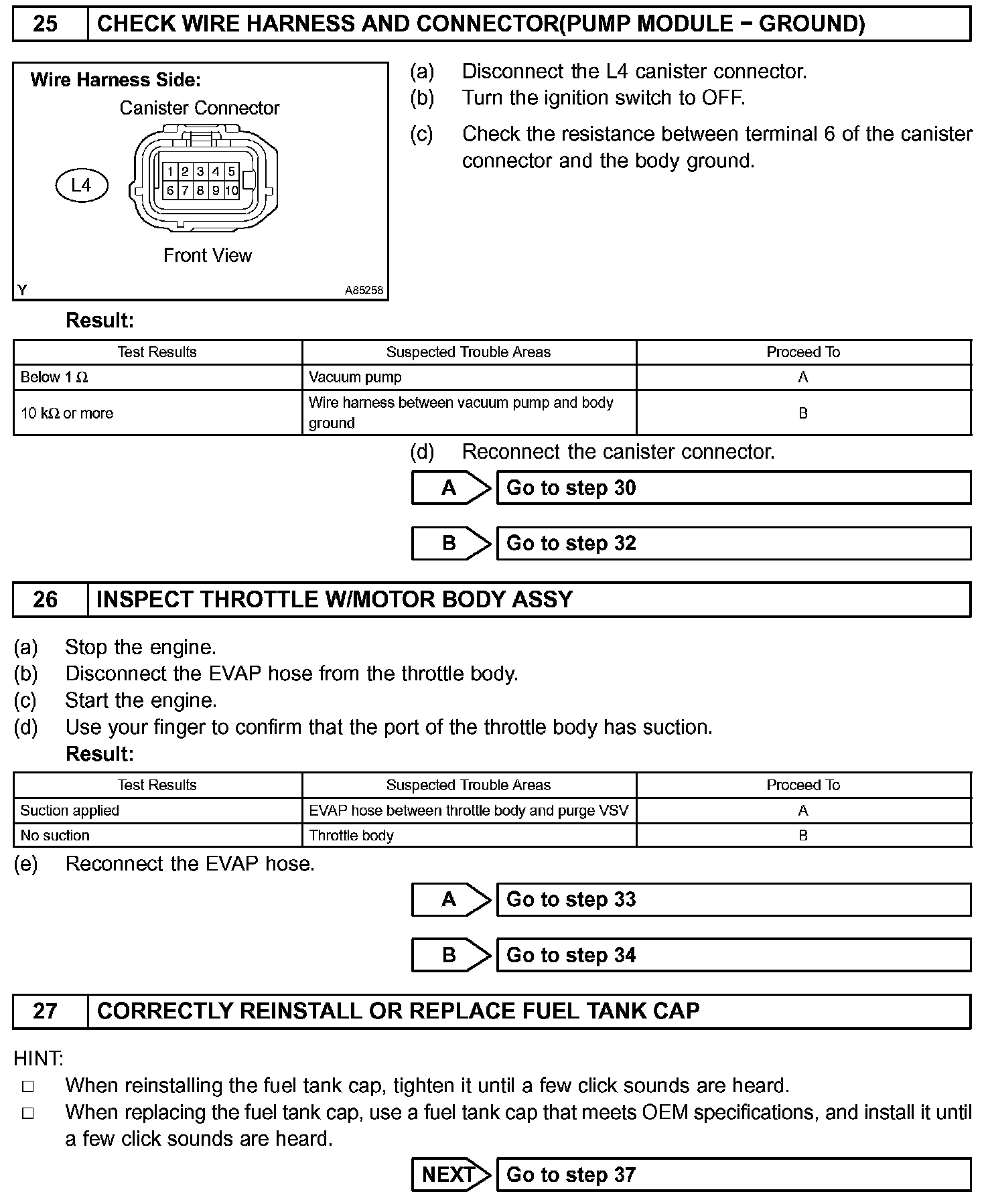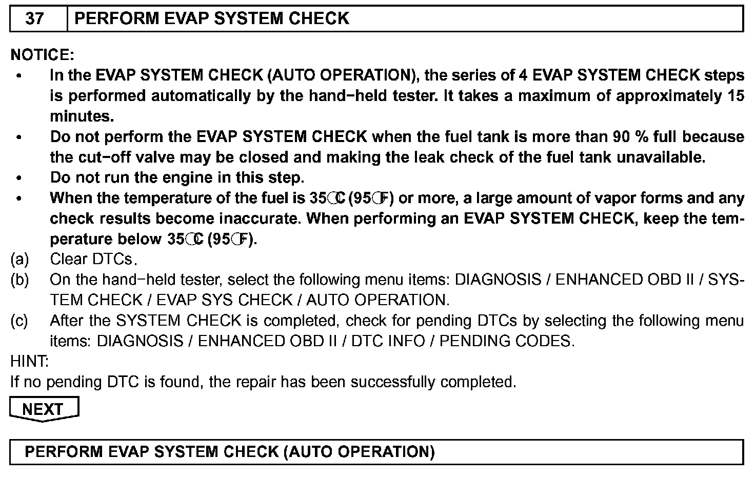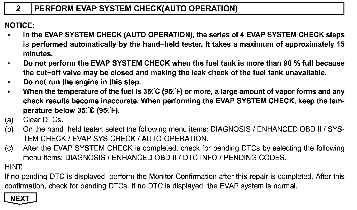 EVAP INSPECTION PROCEDUREDTCS RELATING TO EVAP SYSTEM