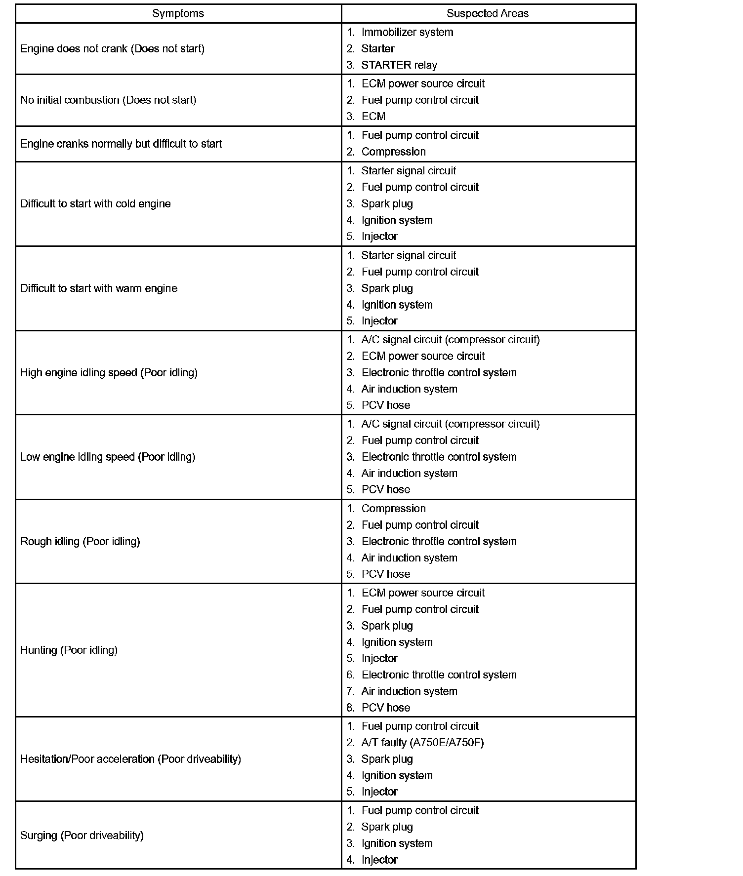 PROBLEM SYMPTOMS TABLEProblem Symptoms Table (Part 1):