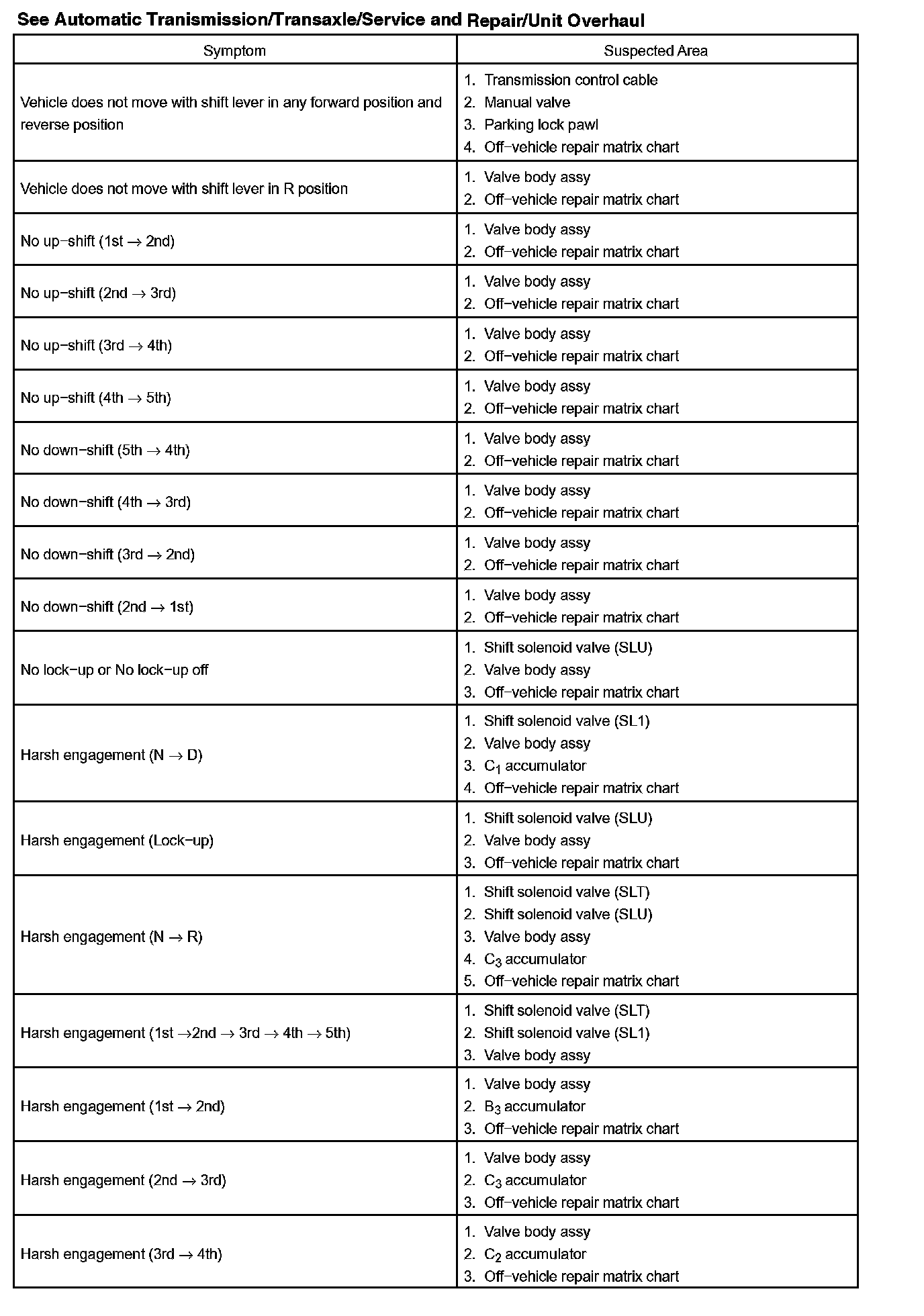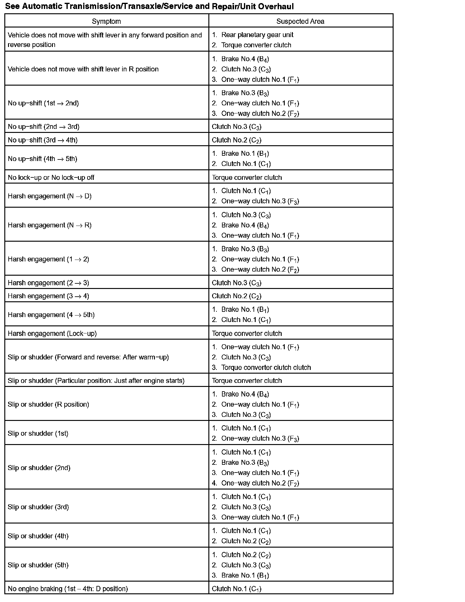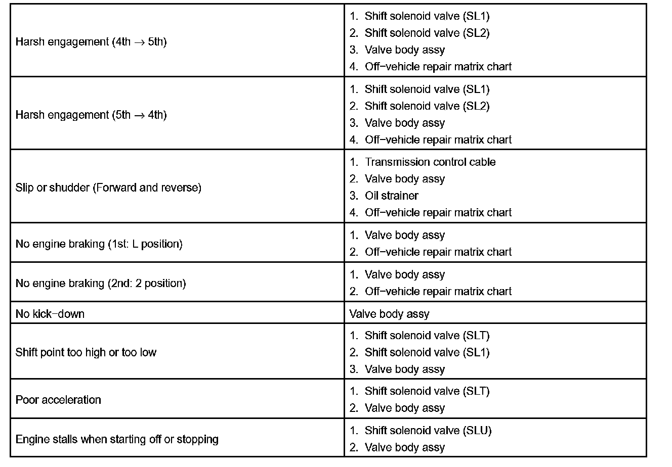 PROBLEM SYMPTOMS TABLEHINT: If a normal code is displayed during the diagnostic trouble code check although the trouble still occurs, check the electrical circuits for each symptom in the order given in the charts and proceed to the troubleshooting.