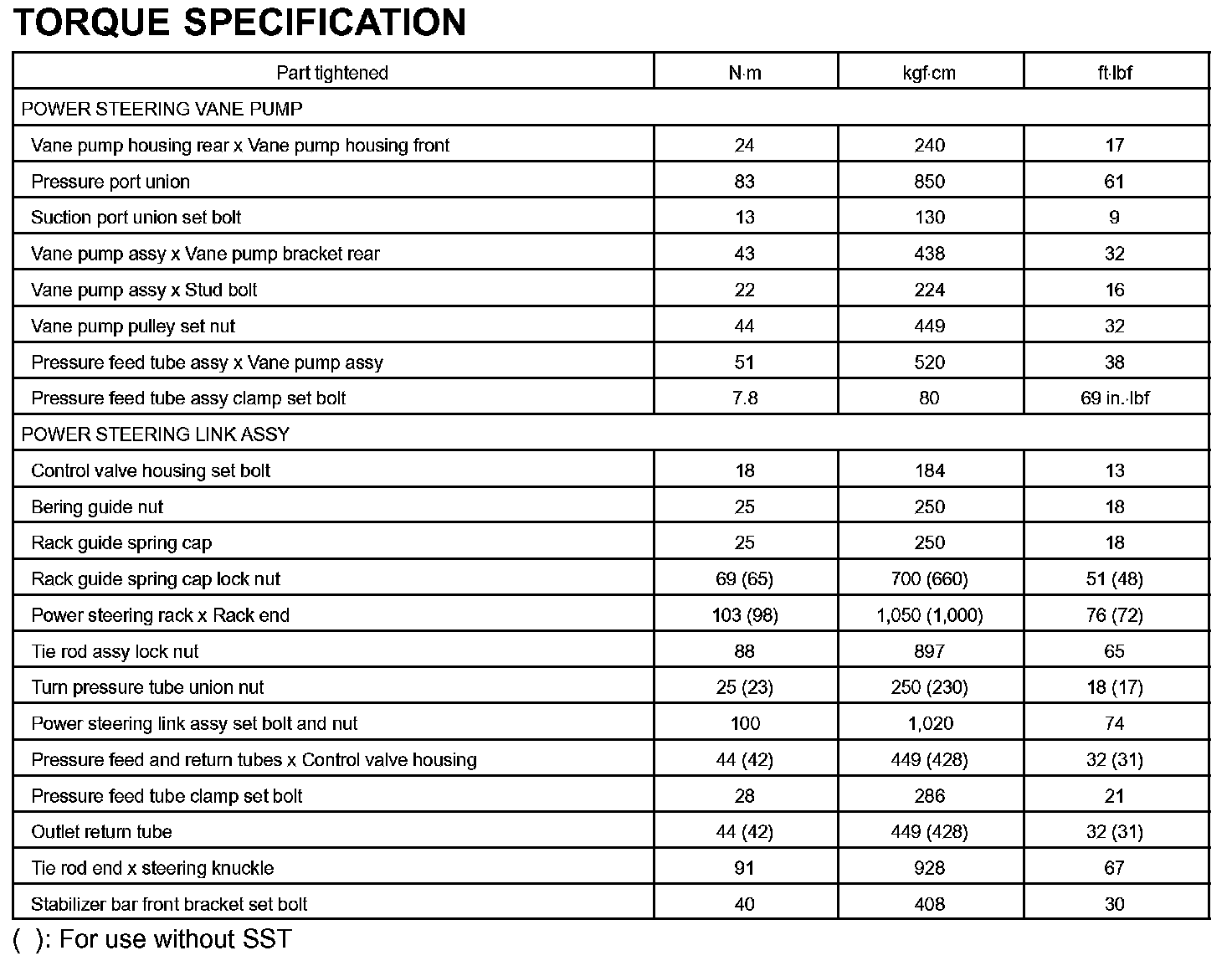 Power Steering-Torque Specification: