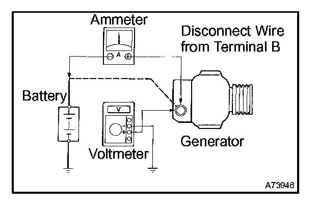 1. Disconnect to the wire from terminal B of the generator and connect it to the negative (-) lead of the ammeter.