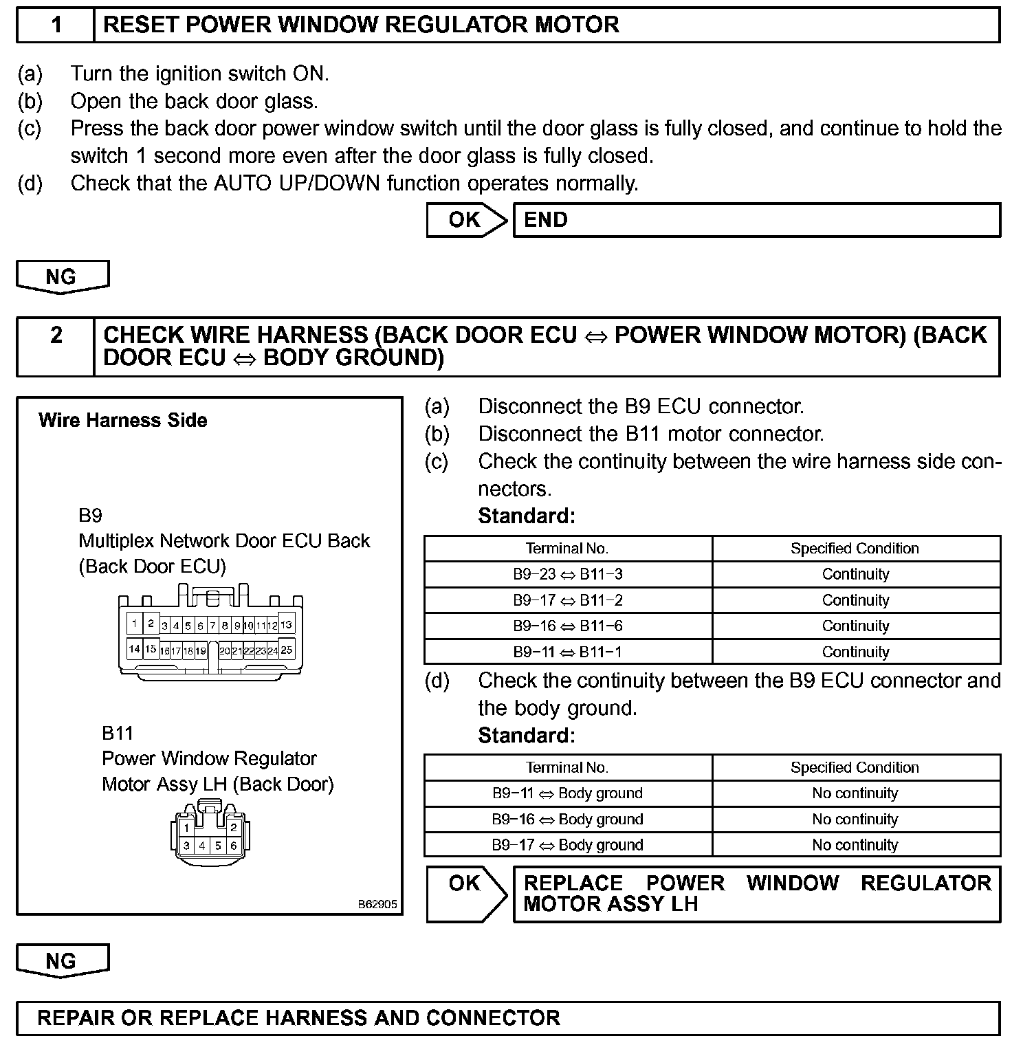 - The MANUAL UP/DOWN function via the back door power window switch can be performed (the ignition switch ON).