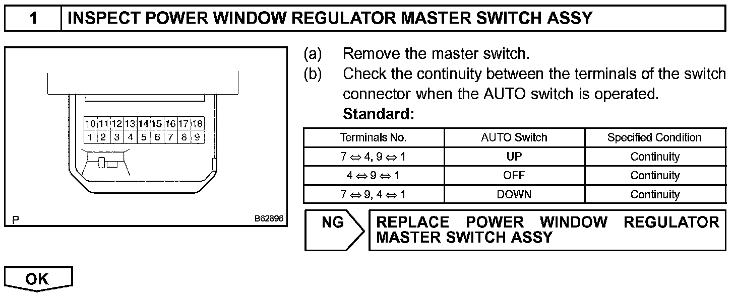 If the manual UP/DOWN function does not operate, the power window motor, the power window master switch or the wire harness is abnormal.